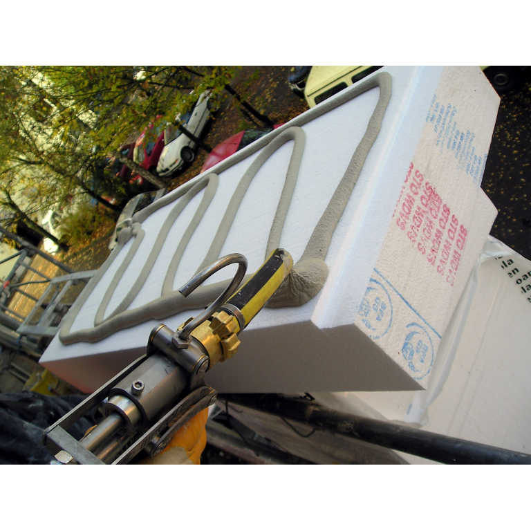 Univerzální jednoruční pistoli inoCOLL lze přímo připojit ke všem běžným míchacím a výtlačným čerpadlům. Malta se na izolační desky ETICS nanáší bez námahy a časově nenáročným způsobem. Integrovaný spínač dálkového ovládání umožňuje automatické zapnutí a vypnutí připojených výtlačných/směšovacích čerpadel při stisknutí spínače.